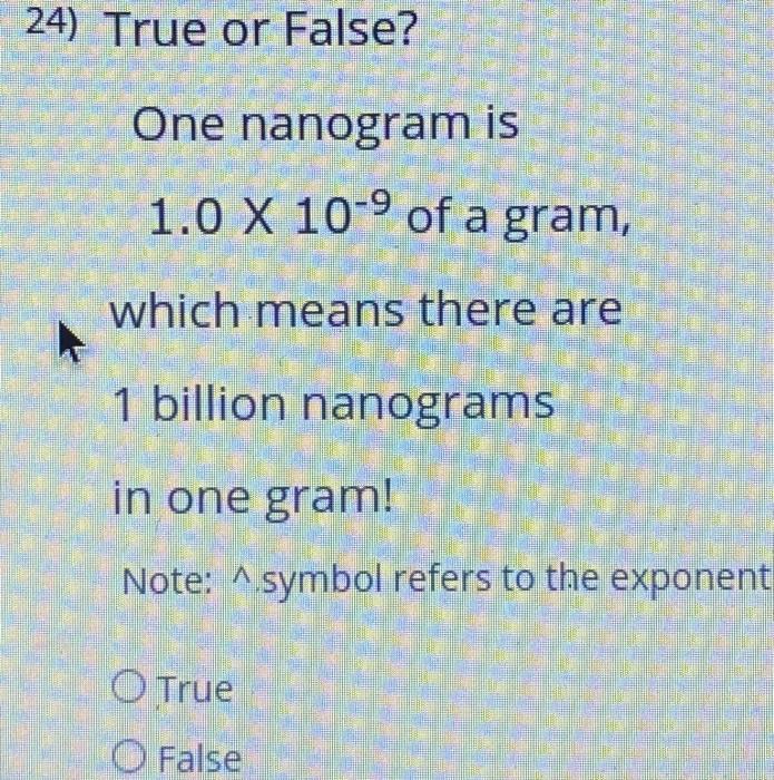 Solved 24 True Or False One Nanogram Is 1 0 X 10 9 Of A Chegg Com